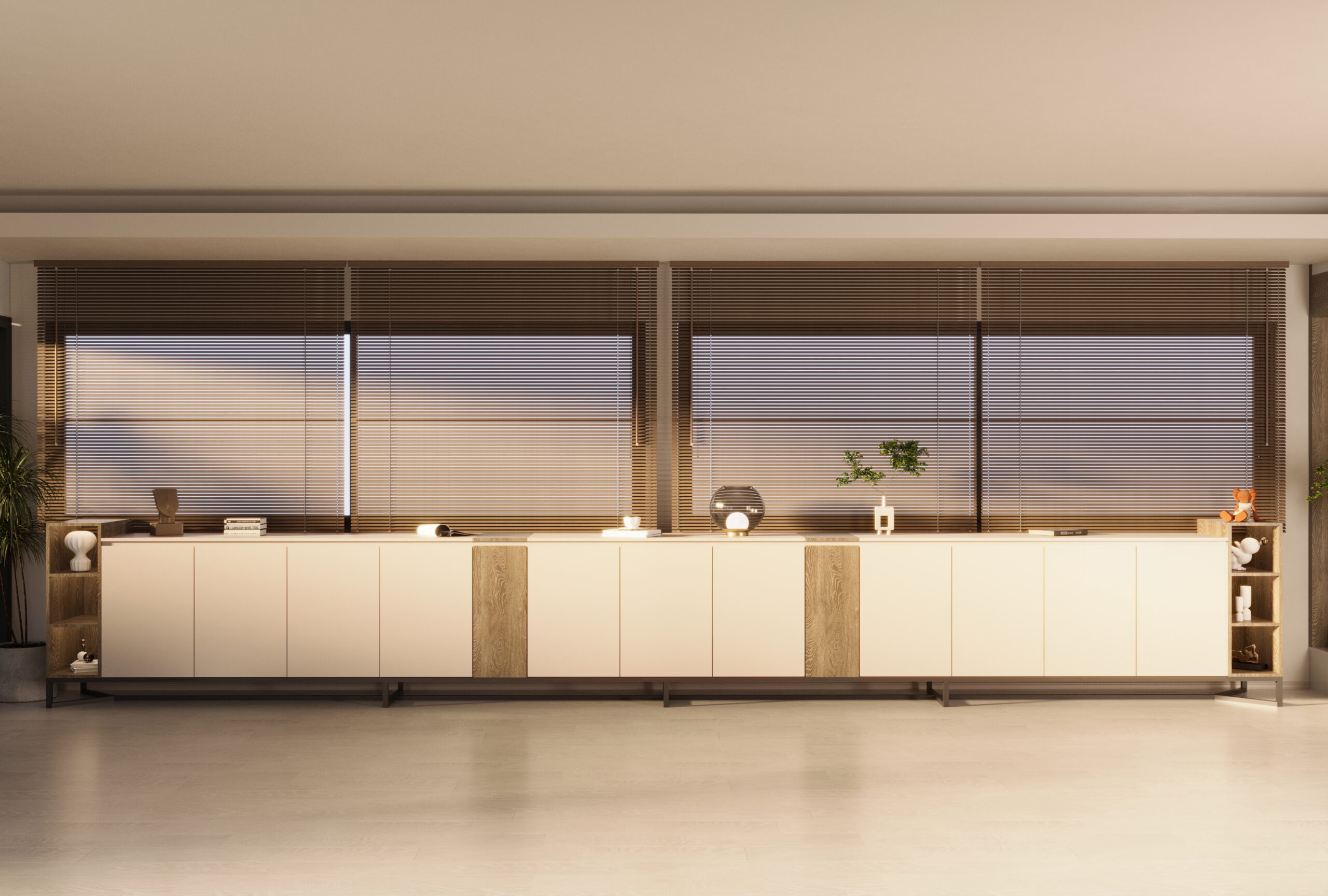 Bu dolap, yalnızca bir depolama birimi değil; mekânın bir parçası, iç mimari anlayışımızın bir yansımasıdır. Zarif detayları ve doğal malzeme kullanımıyla ofisinize şıklık ve işlevsellik katarken, pencere altı alanını etkili bir şekilde değerlendirir.