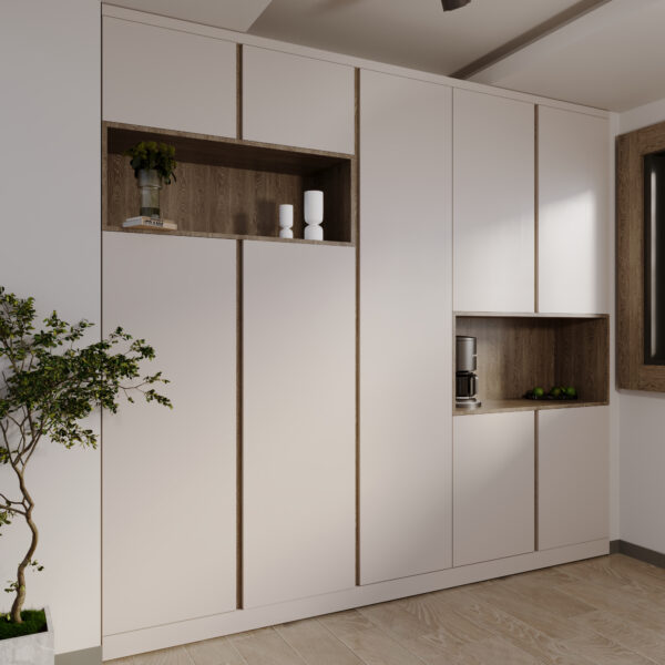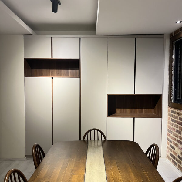 Bu dolap, bir mobilyadan öte, iç mimari anlayışımızın bir yansımasıdır. Lüks algısını kaybetmeden işlevselliği ön plana çıkaran minimalist tasarımı, bulunduğu her mekana karakter ve kimlik katar. Doğal malzeme dokusunu modern çizgilerle harmanlayan bu tasarım, mekanda huzur ve sofistike bir atmosfer yaratır.
