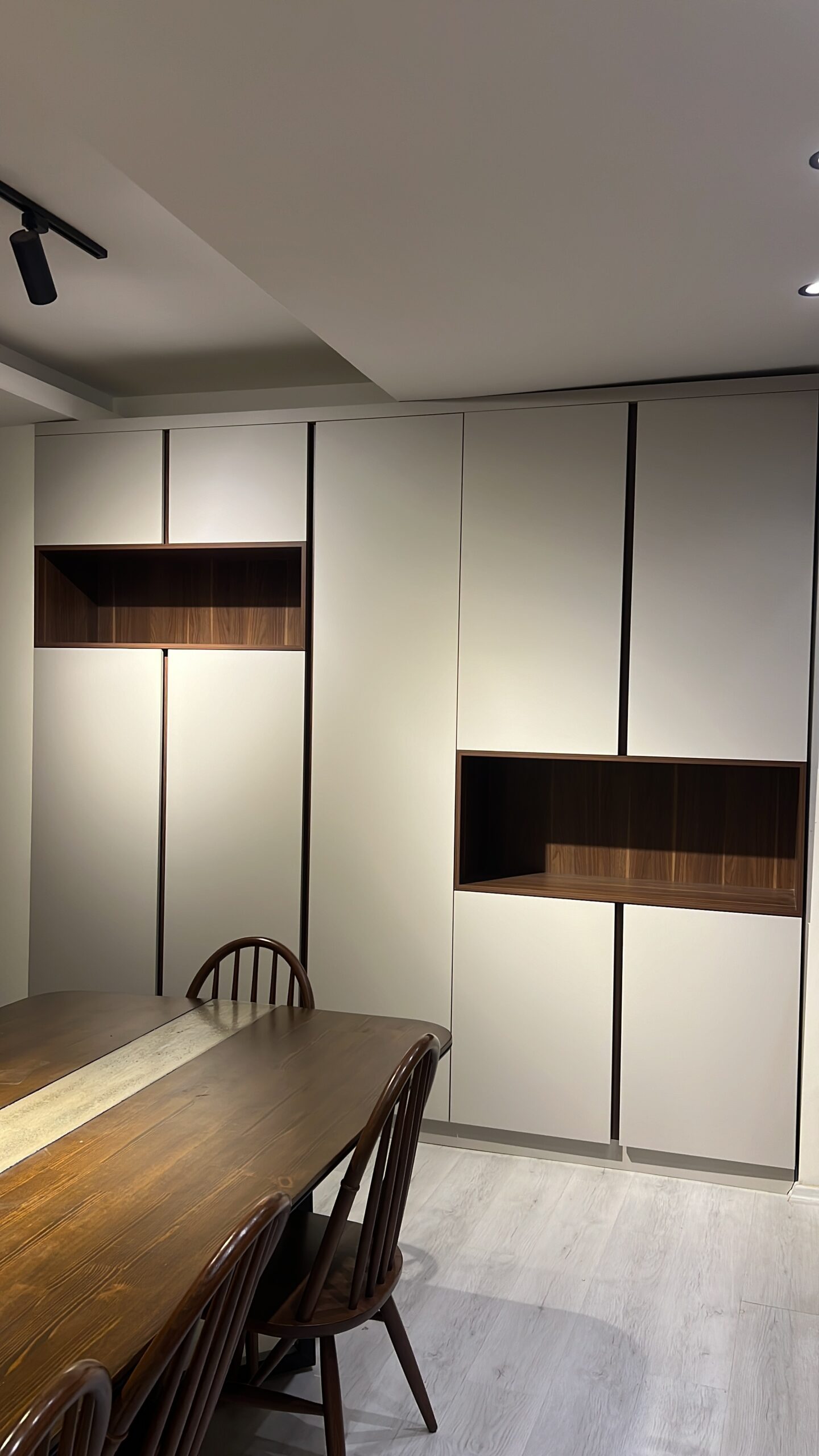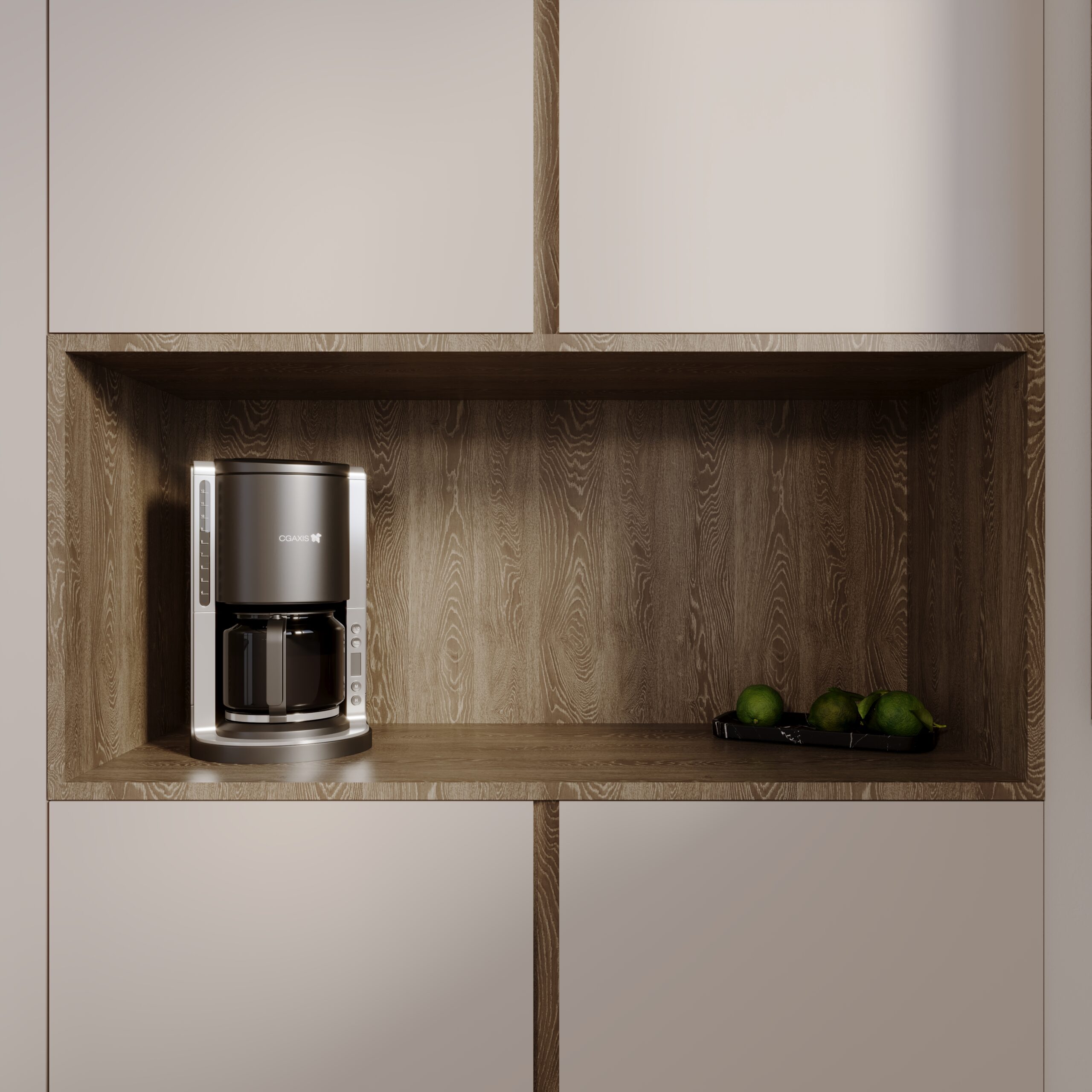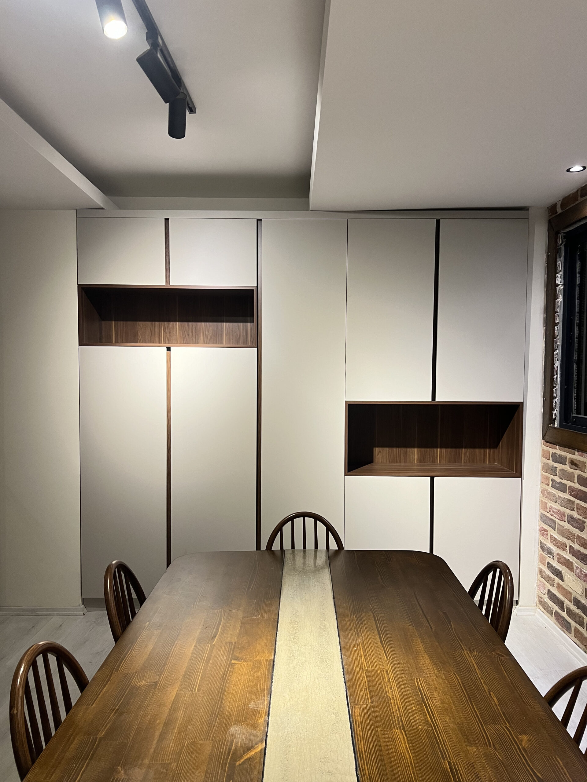Efe Group Mimarlık olarak, işlevselliği estetikle buluşturan özgün bir tasarıma imza attık. Ofisimiz için özel olarak tasarladığımız bu dolap, yalın çizgileri ve detaylarında taşıdığı ceviz ahşap görünümüyle doğal bir sıcaklık sunuyor. Kulpsuz tasarımıyla sadeliğin gücünü öne çıkaran bu eser, ceviz ahşap detaylarıyla zenginleşirken, minimalist bir yaklaşımla ofis ortamında zarif bir denge kuruyor. Açık raf sistemi, sadece depolama ve segileme alanı sunmakla kalmaz; aynı zamanda çay ve kahve makineleri gibi geçici ekipmanları birer tasarım unsuru olarak kullanmanıza olanak tanır.