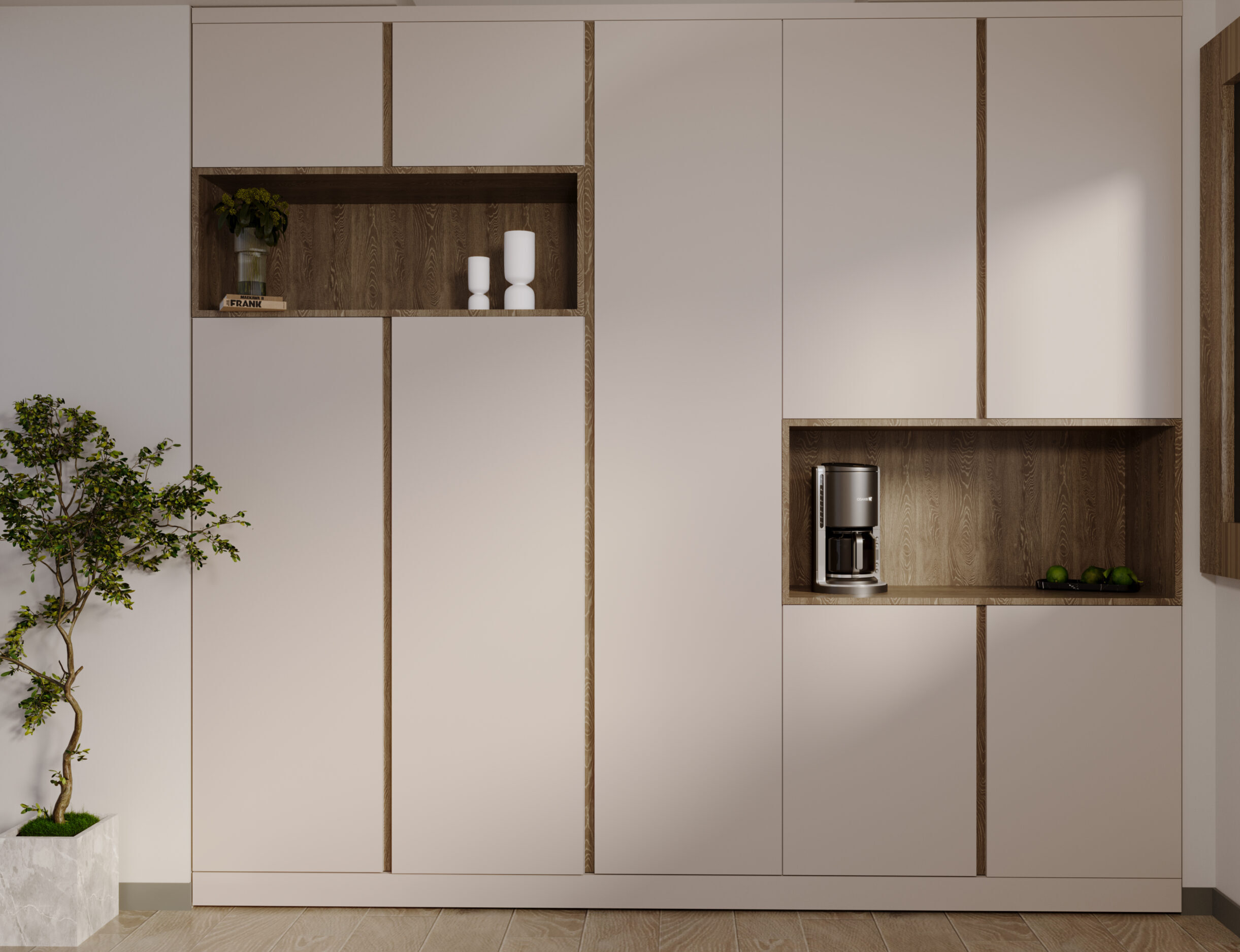 Bu dolap, bir mobilyadan öte, iç mimari anlayışımızın bir yansımasıdır. Lüks algısını kaybetmeden işlevselliği ön plana çıkaran minimalist tasarımı, bulunduğu her mekana karakter ve kimlik katar. Doğal malzeme dokusunu modern çizgilerle harmanlayan bu tasarım, mekanda huzur ve sofistike bir atmosfer yaratır.